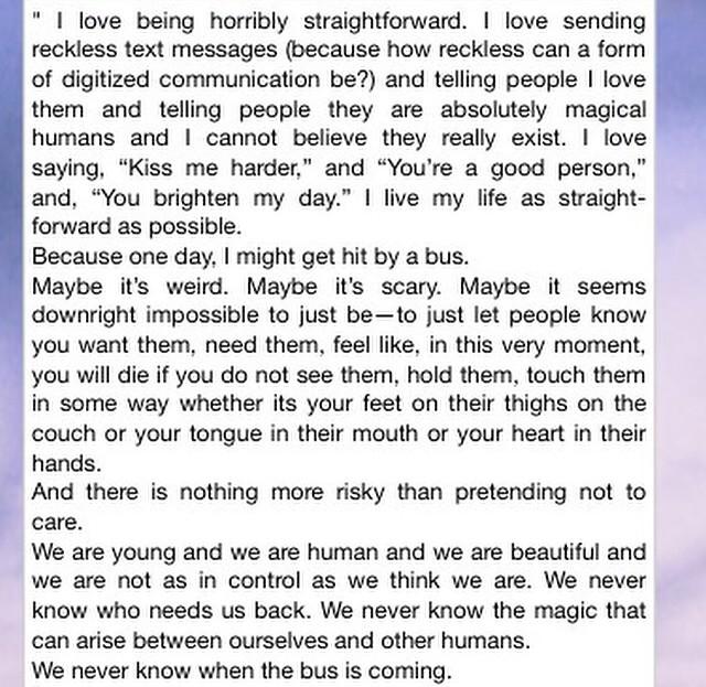 But more than anything I want to say I'm sorry. I wasn't myself. I lost sight of who I was and I got caught up in me. I didn't fight for you. I thought what I did was fine and not a big deal at the time but in retrospect I am so infuriated with myself and if there's anything in my entire life I could change, it would be that.